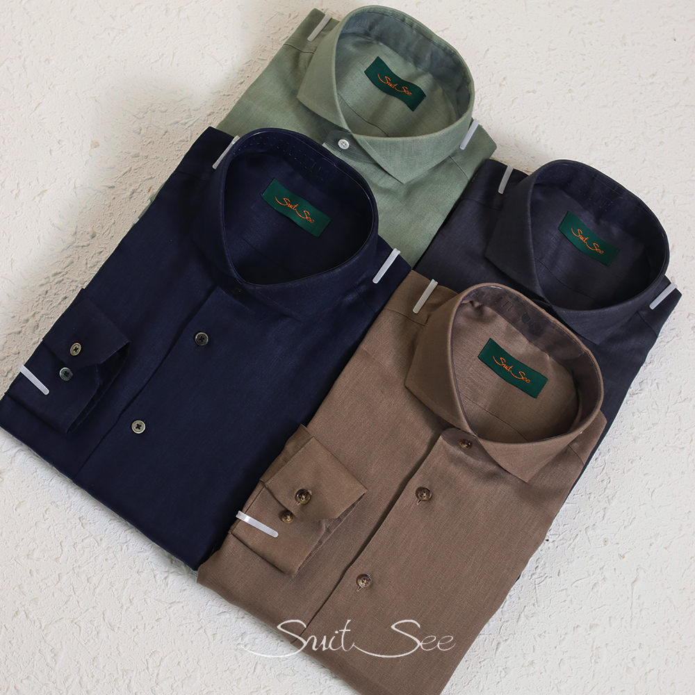 Name: Cutaway Collar 100%Linen Casual Shirt(Facing on Front Openning)