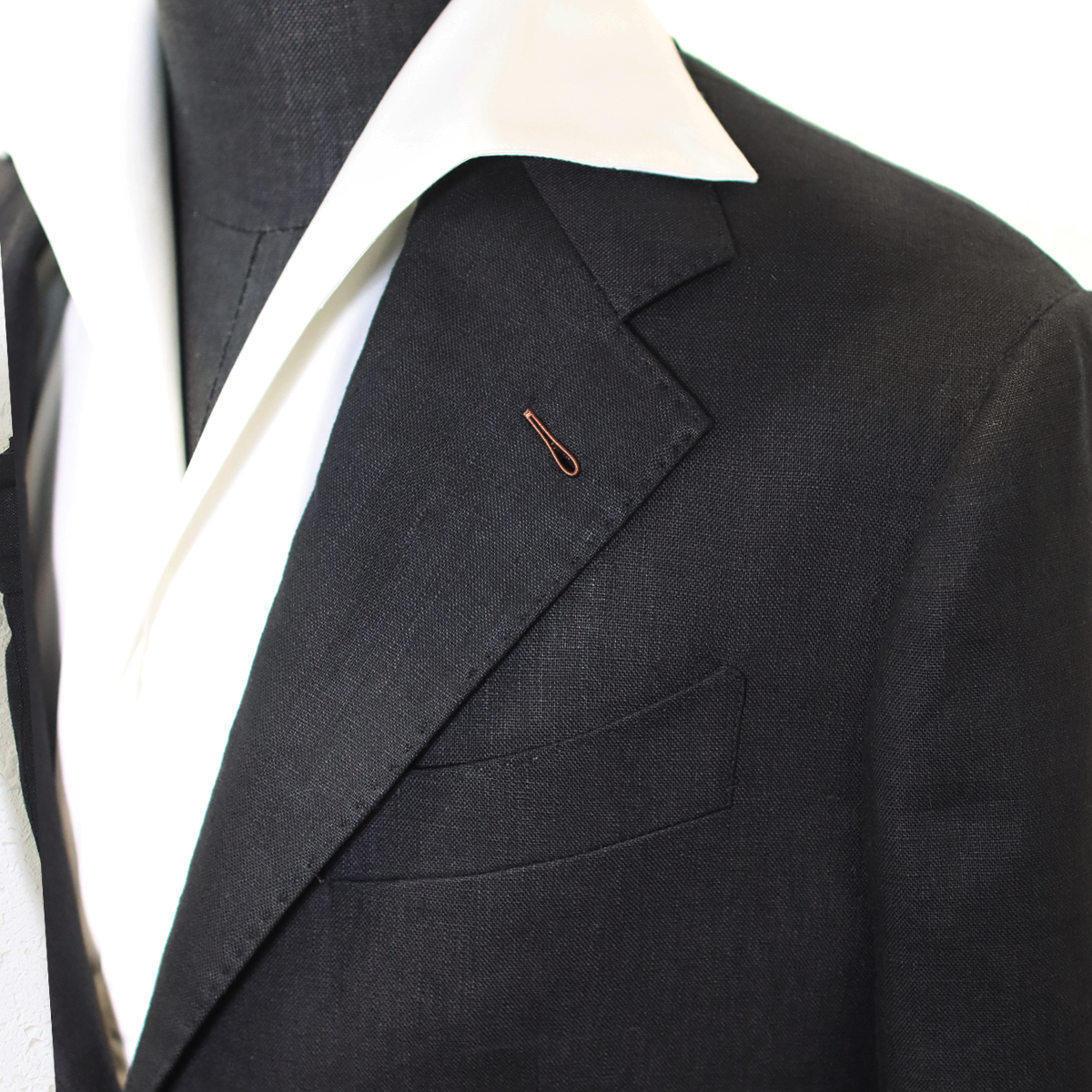 Name: 【Blue Label】Black 100%Linen Suit Italian Style No Shoulder Pad Half Lining